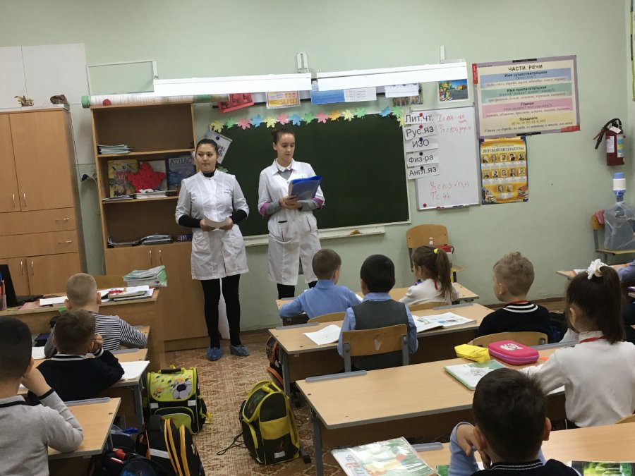 15 ноября 2019 года в 1-2 классах были организованы выступления волонтеров медицинского колледжа в рамках городской акции "Всё начинается с семьи". Учащимся рассказали о вредных и полезных привычках.