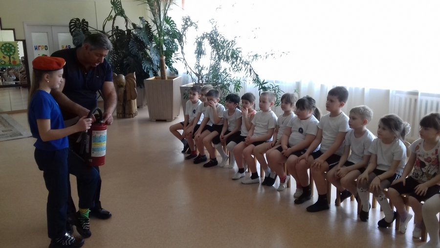 Кандидаты в волонтёры 5а класса «Юный пожарный спасатель»провели в детском саду № 113 занятие с двумя группами детей по пожарной безопасности. Воспитанникам детского сала показали, как пользоваться огнетушителем, как действует пожарный расчёт, как надо вести себя при эвакуации из здания детского сада при пожаре. Ребята заинтересованно участвовали в занятии, задавали много вопросов. Понравилось такое занятие всем: и ребятам и юным пожарным спасателям!