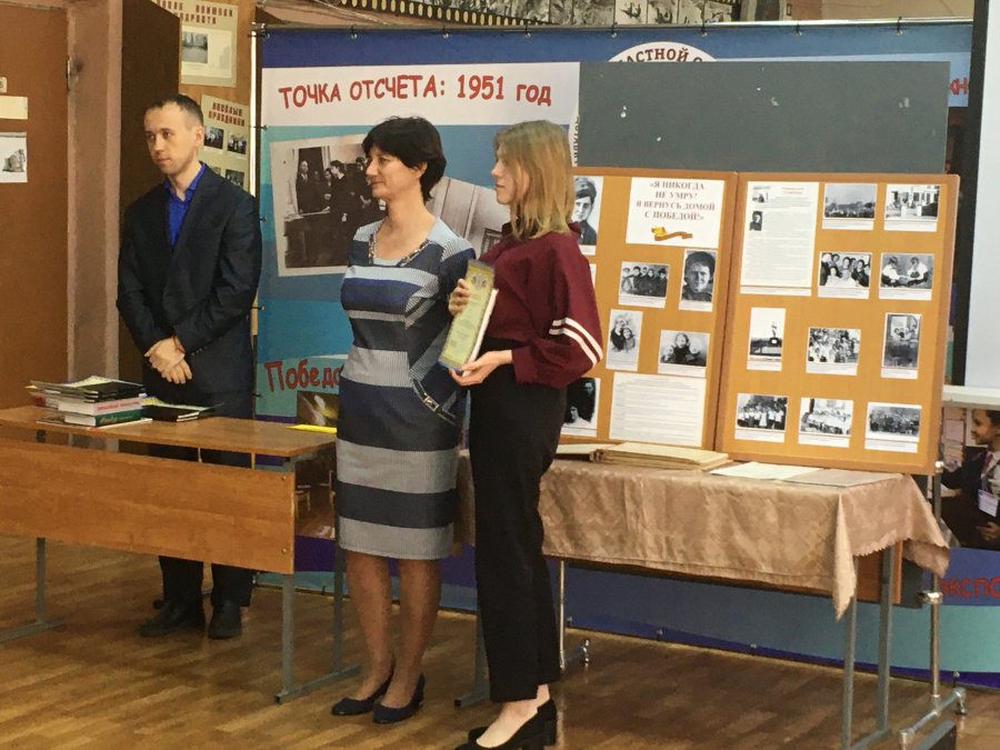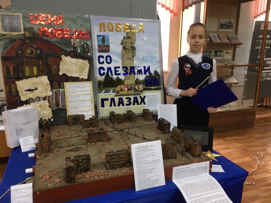11-13 марта 2020 года в Волгограде на Станции туризма и экскурсий проходил областной слёт представителей лучших музеев образовательных организаций. В этом году слёт был посвящен 75-й годовщине Победы в Великой Отечественной войне. В нём принимала участие команда нашей школы (руководитель команды -Уланова С.В.). Участники слёта (Арькова Алёна, Буков Михаил и Шлеина Арина) приняли участие в четырёх конкурсах: экскурсоводов, эрудитов, выставок и фондовой работы. Актив нашего школьного музея "История родного края" занял 1 место в фондовой работе и 3 место в конкурсе выставок "Победа со слезами на глазах". Участники слёта посетили интерактивный музей "Россия - моя история", прослушали лекцию "Классификация, учёт и хранение книжных источников в фондах музея", приняли участие в вечере знакомства, посетили выставку Культурного центра ГУ МВД России по Волгоградской области, посетили концерт авторской песни, побывали в музее "Дети Царицына- Сталинграда - Волгограда".