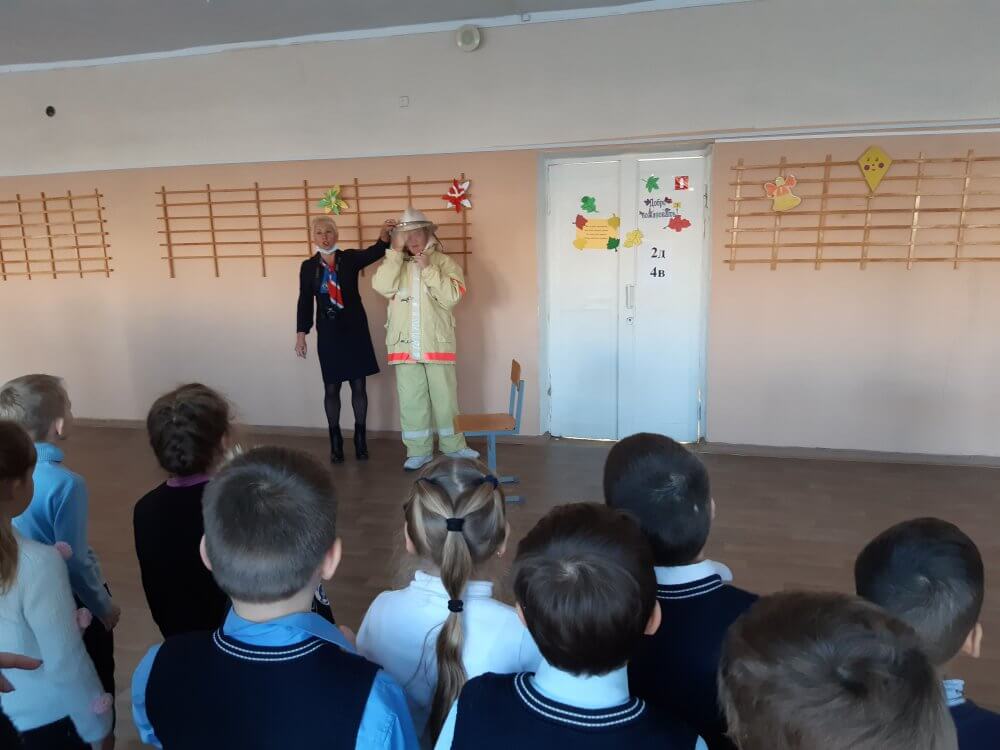 Волонтёры 9а класса «Юный пожарный спасатель», под руководством руководителя проекта президентского гранта Бирюлиной В.Н., провели занятия с начальными классами по действиям пожарных и санитарных дружин. Ребята рассказали как надо соблюдать меры пожарной безопасности, оказывать первую помощь пострадавшим при ЧС.