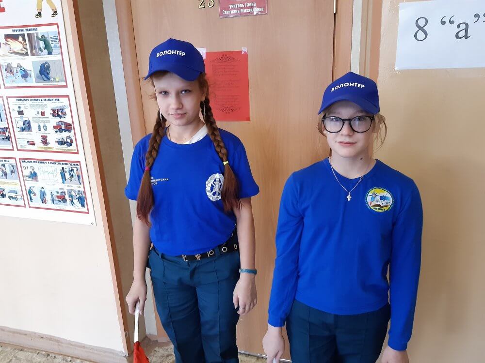 Волонтеры 7 "А" класса проводят занятия по оказанию помощи пострадавшим при ЧС с обучающимися седьмых классов желающих быть волонтерами.