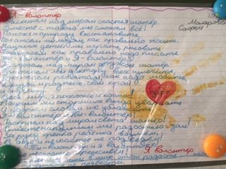 — Человек на земле нуждается в нашей помощи ... Активисты 4в класса рассказали одноклассникам о посильной помощи, которую они оказывают. Арина Жуманиязова рассказала как волонтёры добровольно и безвозмездно занимаются организованной общественно полезной деятельностью. Волонтёр-это человек, который приносит радость людям, помогая им, оказывая какую-либо помощь, не прося ничего взамен. Тот, который изменяет жизнь людей, в том числе и свою, в лучшую сторону. Тот, который с каждым днём совершенствуется и пополняет свою копилку добрых дел. Айнура Мамедова поделилась с ребятами своей помощью в приюте бездомных собак. Два года со старшей сестрой помогают они собачьему приюту. Гуляют с собаками, чистят клетки. Призвала ребят оказывать посильную помощь в приюте. Ведь даже самое крохотное, но доброе дело уже хорошо. Учитель Ж.А.Васильева объяснила, что волонтёром быть очень ответственно, важно, интересно, увлекательно и актуально, так как волонтёр имеет много возможностей. Во-первых, ты повышаешь свою самооценку: ты всегда осознаешь, что даришь добро и поэтому ты сам становишься лучше. Ты начинаешь ощущать себя по-другому.