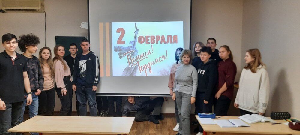 2 февраля вся страна отмечала 79-ю годовщину Победы под Сталинградом. К этой важной для все жителей Волгоградской области дате во всех классных коллективах школы прошли тематические классные часы, пятиминутки на уроках истории, обществознания, окружающего мира. Учащиеся посмотрели презентации и видеофильмы, посвященный Сталинградской битве. Учителями истории и обществознания была подготовлена викторина "Подвиг твой помнит весь мир, Сталинград", в которой приняли участие учащиеся 5-11 классов. Учителя начальной школы и классные руководители среднего и старшего звена провели конкурсы рисунков, плакатов, поздравительных открыток. Учащиеся подготовили и развесили в микрорайоне, прилегающем к школе, поздравительные листовки. Для старшеклассников была подготовлена литературно-музыкальная композиция "Здесь орден мужества одет на грудь земли". Волонтерский отряд школы поздравил с Днем воинской славы ветеранов по телефону. Учащиеся 5г класса приняли участие в конкурсе макетов военной техники.
