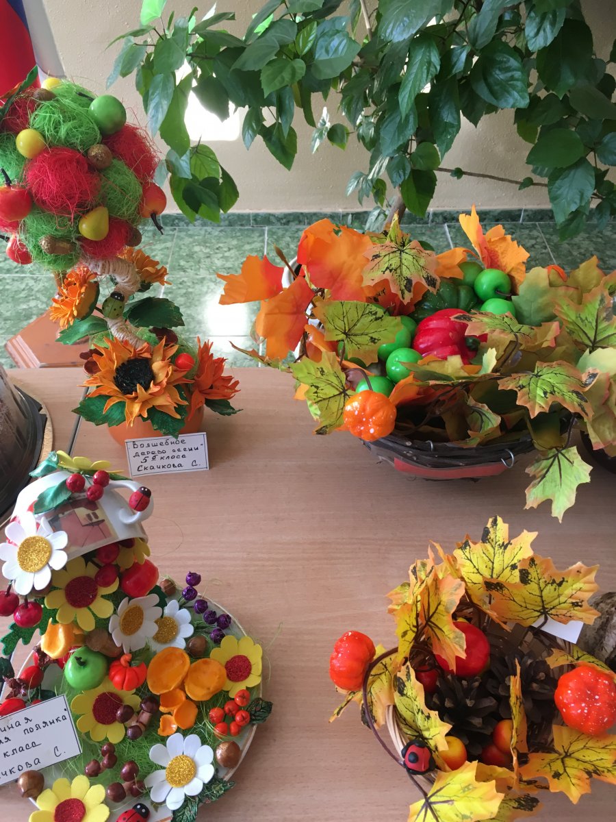 Талант и фантазия участников выставки заслуживают искреннего уважения и признания. Подумать только: обычные листья, желуди, шишки, веточки деревьев, фрукты и овощи в умелых руках превратились в забавных гусениц, чудо-птиц, лесных зверушек, букеты сказочных цветов, вазы, картины, кареты… А еще осень рисовали, лепили из пластилина, к выставке пекли пироги и печенье, составляли портреты, панно и мозаики.Сколько радости и восторга подарили всем авторы этих удивительных работ! Мы выражаем благодарность родителям и детям за активное участие в осенней школьной выставке-ярмарке «Дары осени». ВЫ МОЛОДЦЫ!!!
