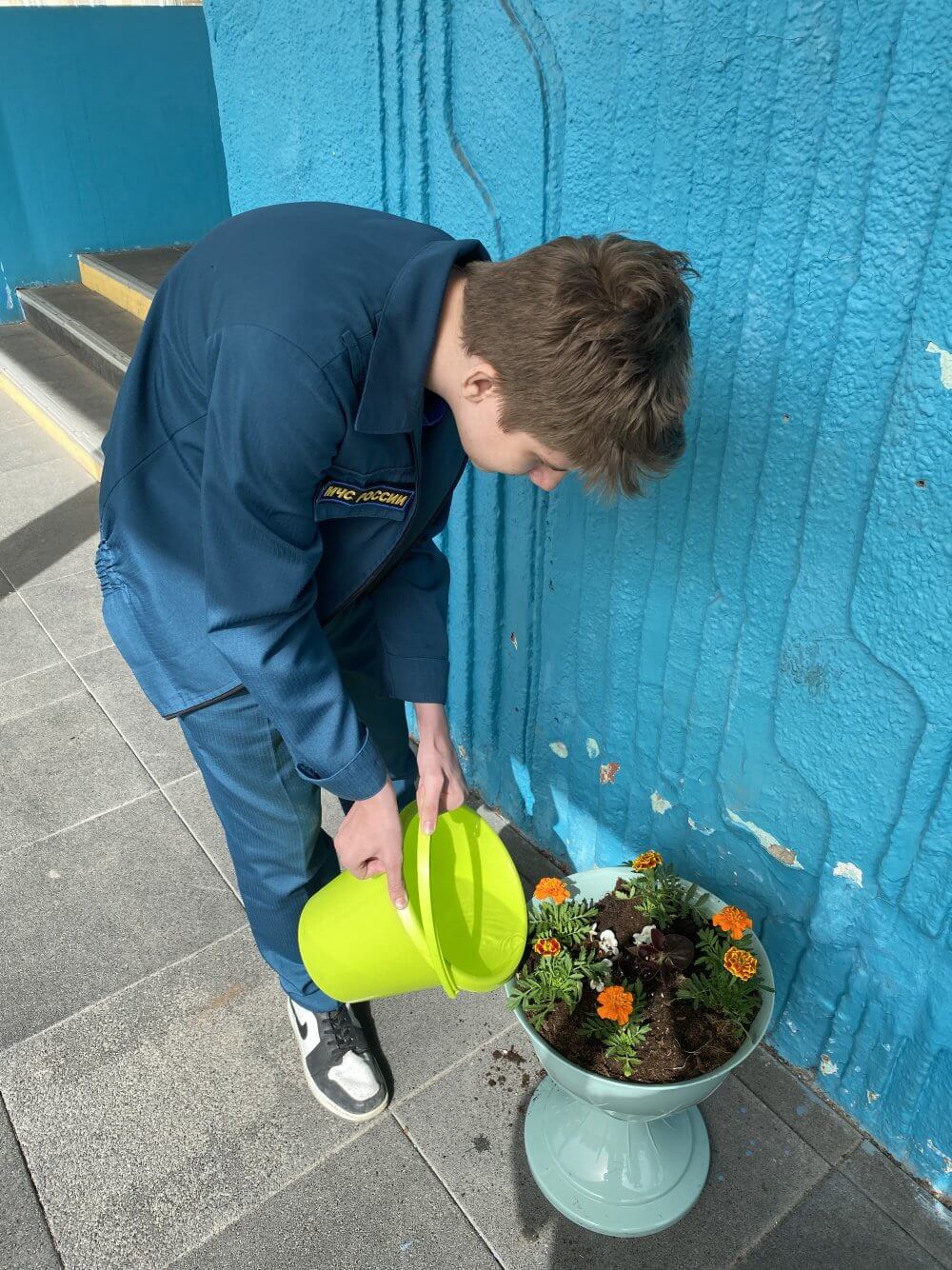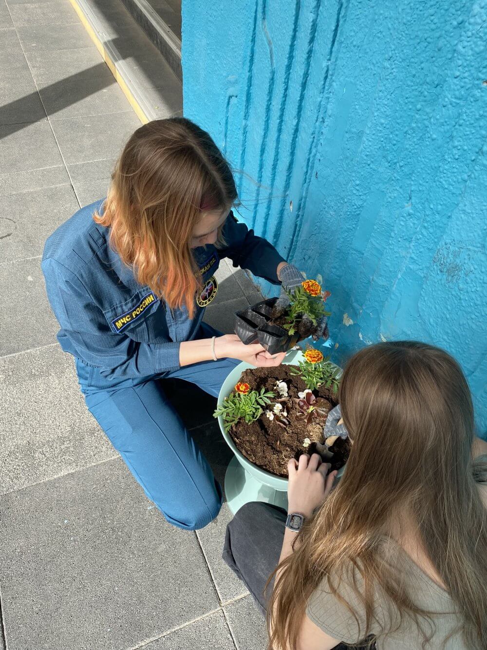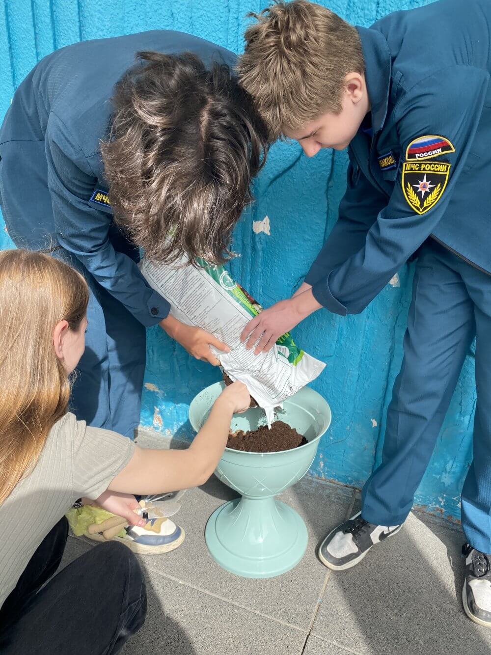 24 апреля кадеты 8б класса в уличные кашпо при входе в школу посадили саженцы цветов. Ребята стараются украсить родную школу и делают подарок к очередному дню рождения родного города!