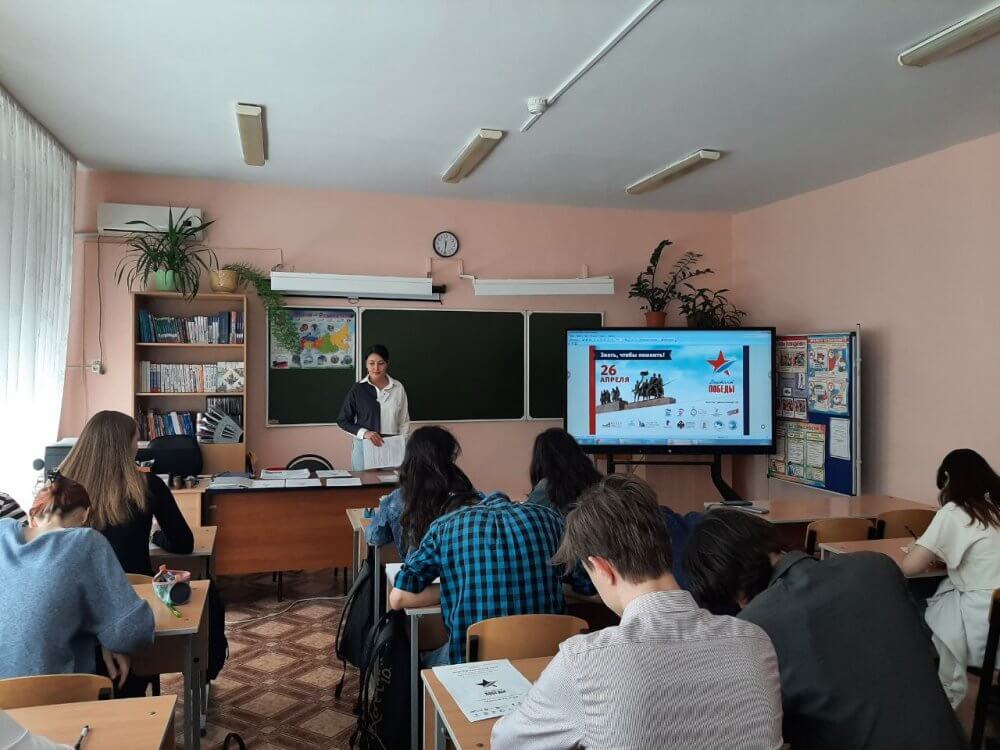 26 апреля в школе был проведен «Диктант Победы». Главный идейный вдохновитель в рамках школы Широбокова Елена Васильевна , помощники- волонтеры Алина Руслановна Жесупова и Татьяна Петровна Тяпкина. Этот проект партии «Единая Россия» помог учащимся осознать значение Победы, роль нашей страны в самом грандиозном сражении человечества с фашизмом.![]()